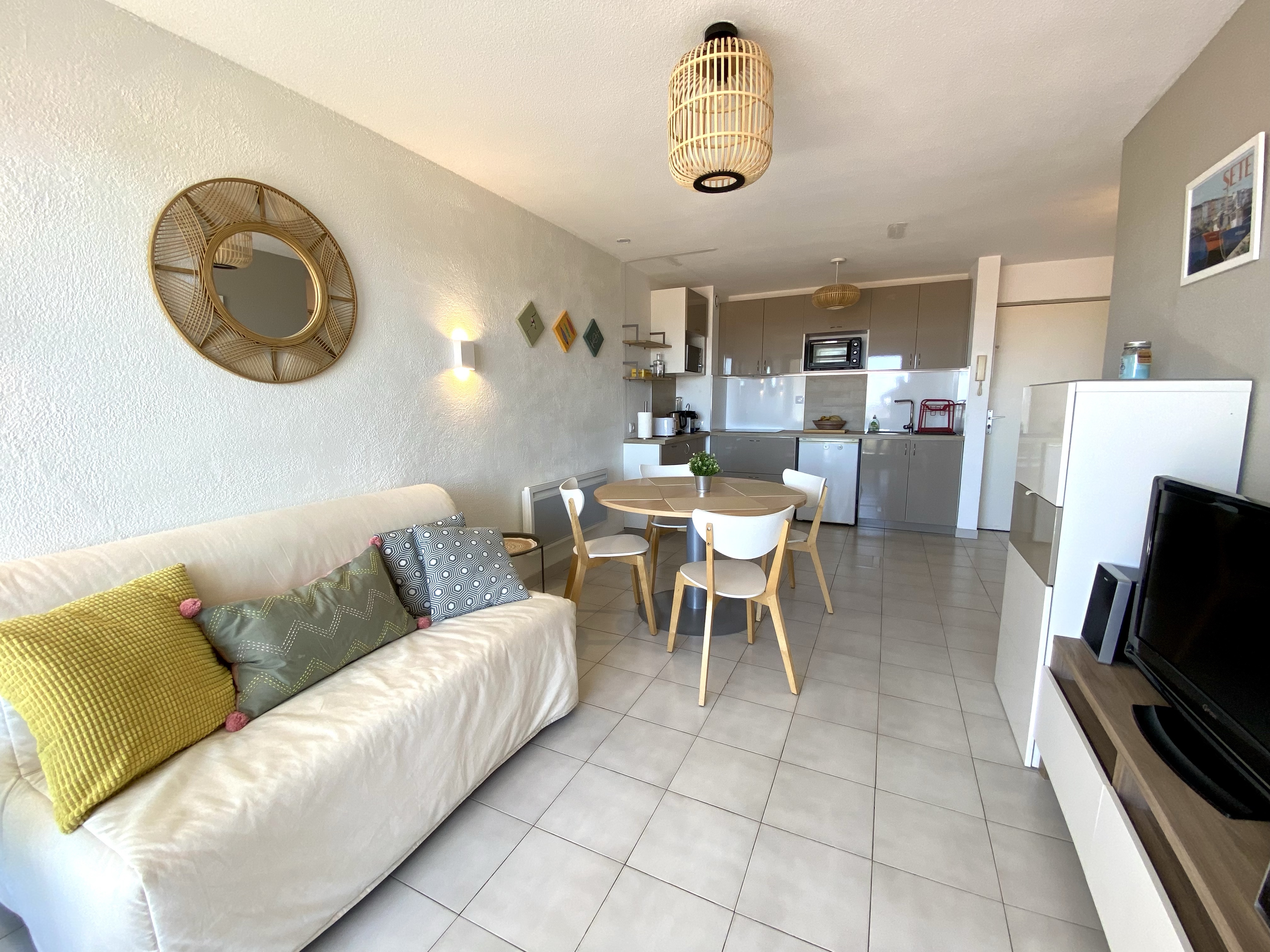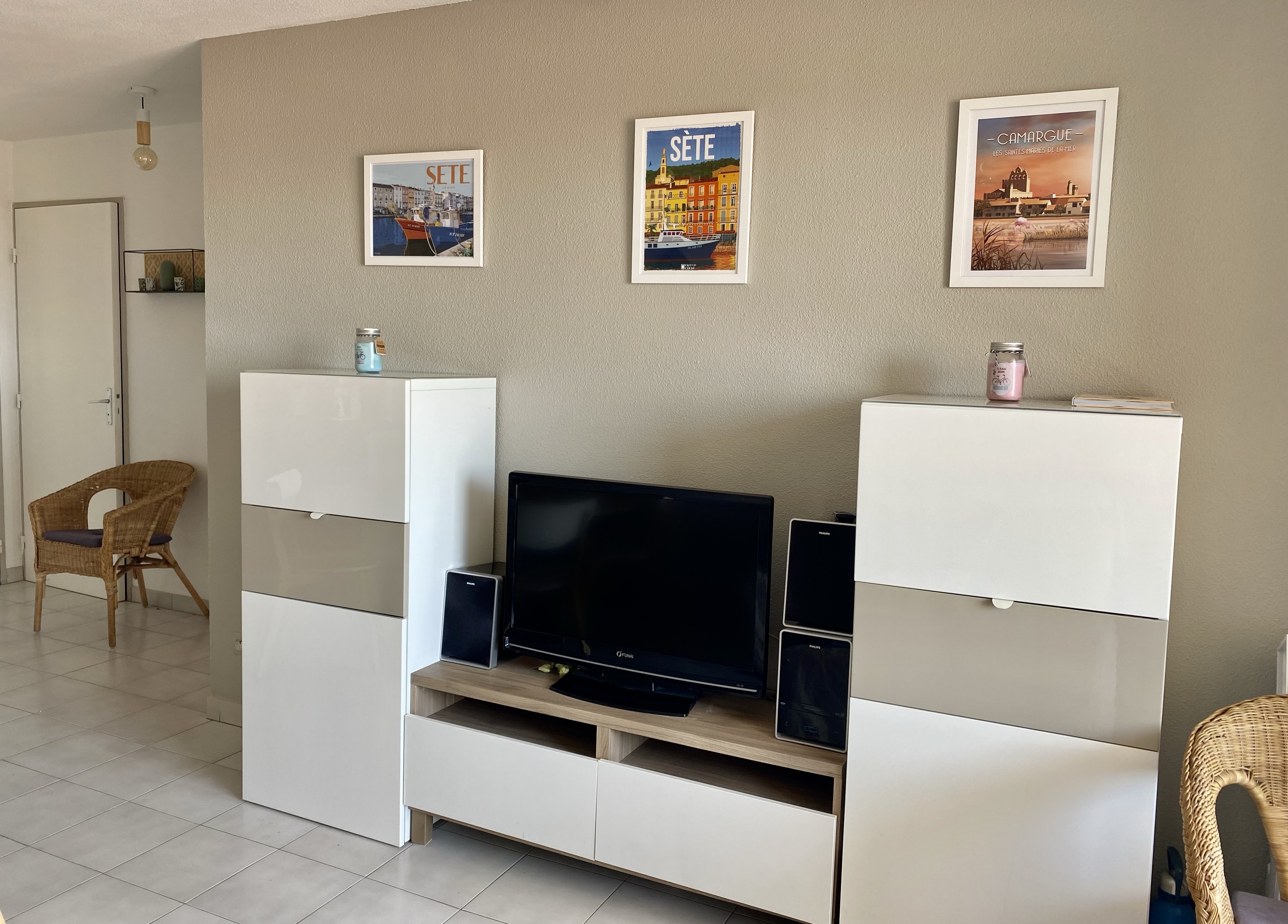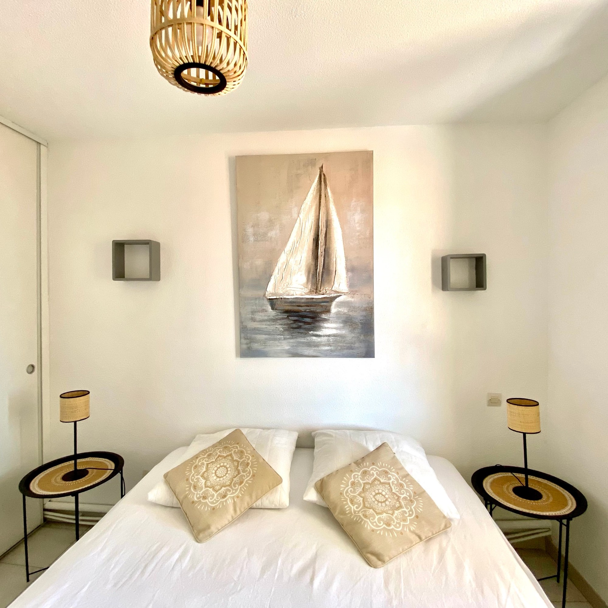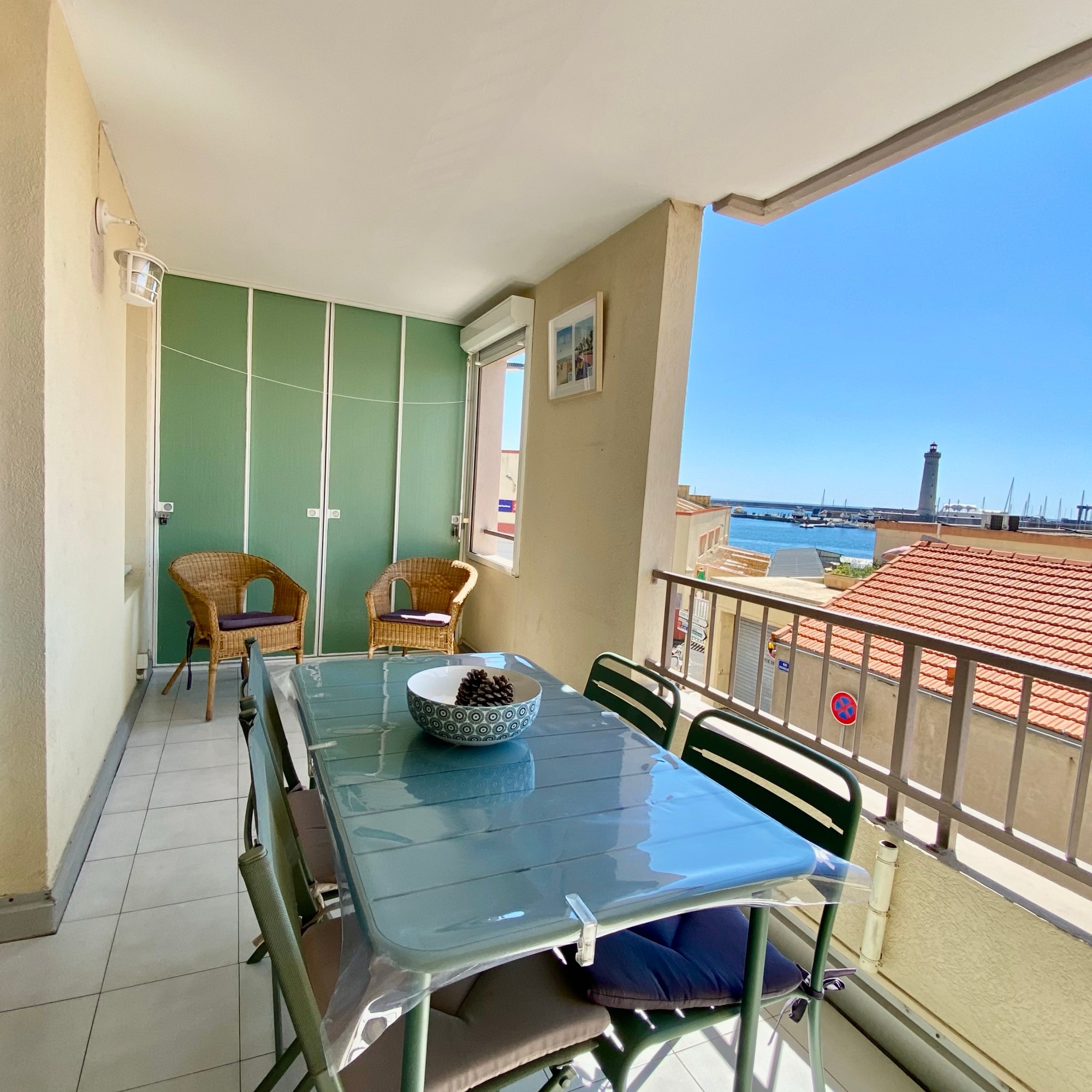 Nous vous proposons un confortable hébergement 2 pièces et sa terrasse, plein sud avec vue sur le port de plaisance, le phare Saint-Louis et la mer Méditerranée, et à 3 minutes du cœur touristique de Sète et des commerces.